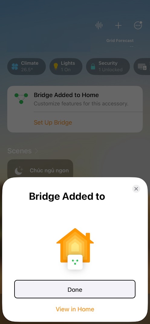 - Nhấn Add to Home → chọn Nhà, Phòng, và Tên cho thiết bị → Done.