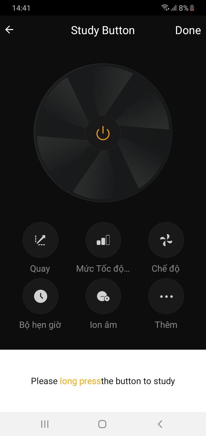 - Ấn giữ phím nguồn để học lệnh On/Off trong khoảng 2 giây.