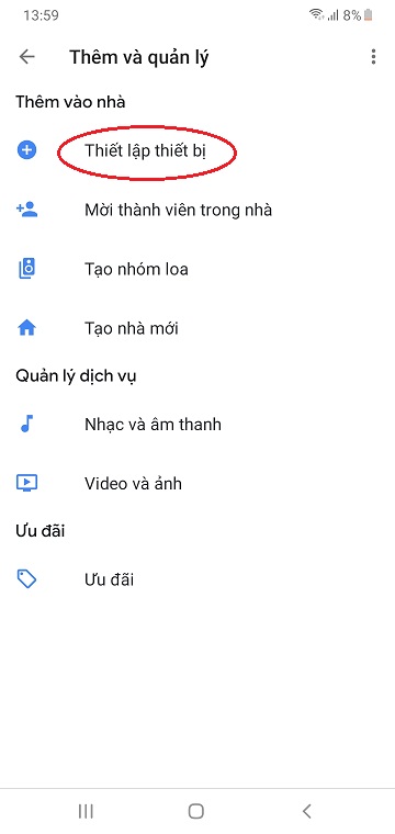 - Mở app Google Home, nhấn dấu cộng, chọn Thiết lập thiết bị (Set up device).
