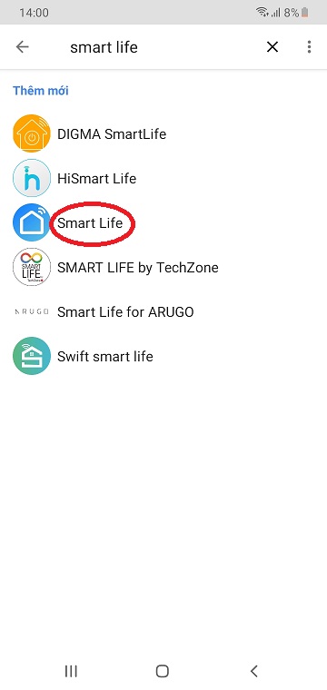 - Nhập Smart Life vào tìm kiếm, chọn ứng dụng.