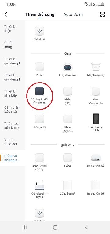 - Chọn Cổng và những thiết bị khác > Bộ chuyển đổi hồng ngoại.
