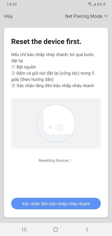 - Chờ đèn báo nhấp nhanh xanh, chọn Xác nhận đèn báo nhấp nháy nhanh.