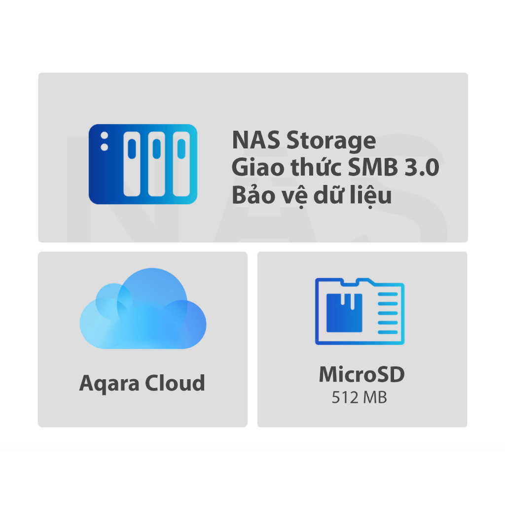 - Phương thức lưu trữ linh hoạt: đám mây, thẻ nhớ microSD 512MB, NAS.