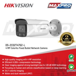 Camera Hikvision ColorVu 4MP, ban đêm có màu 24/7, phát hiện người/xe AI, chống nước IP67.