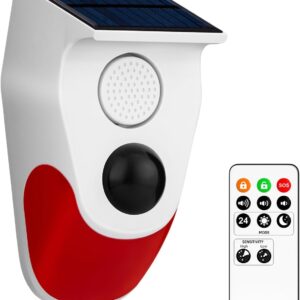 Còi báo động ngoài trời 120dB, năng lượng mặt trời, đèn flash, chống nước IP65.