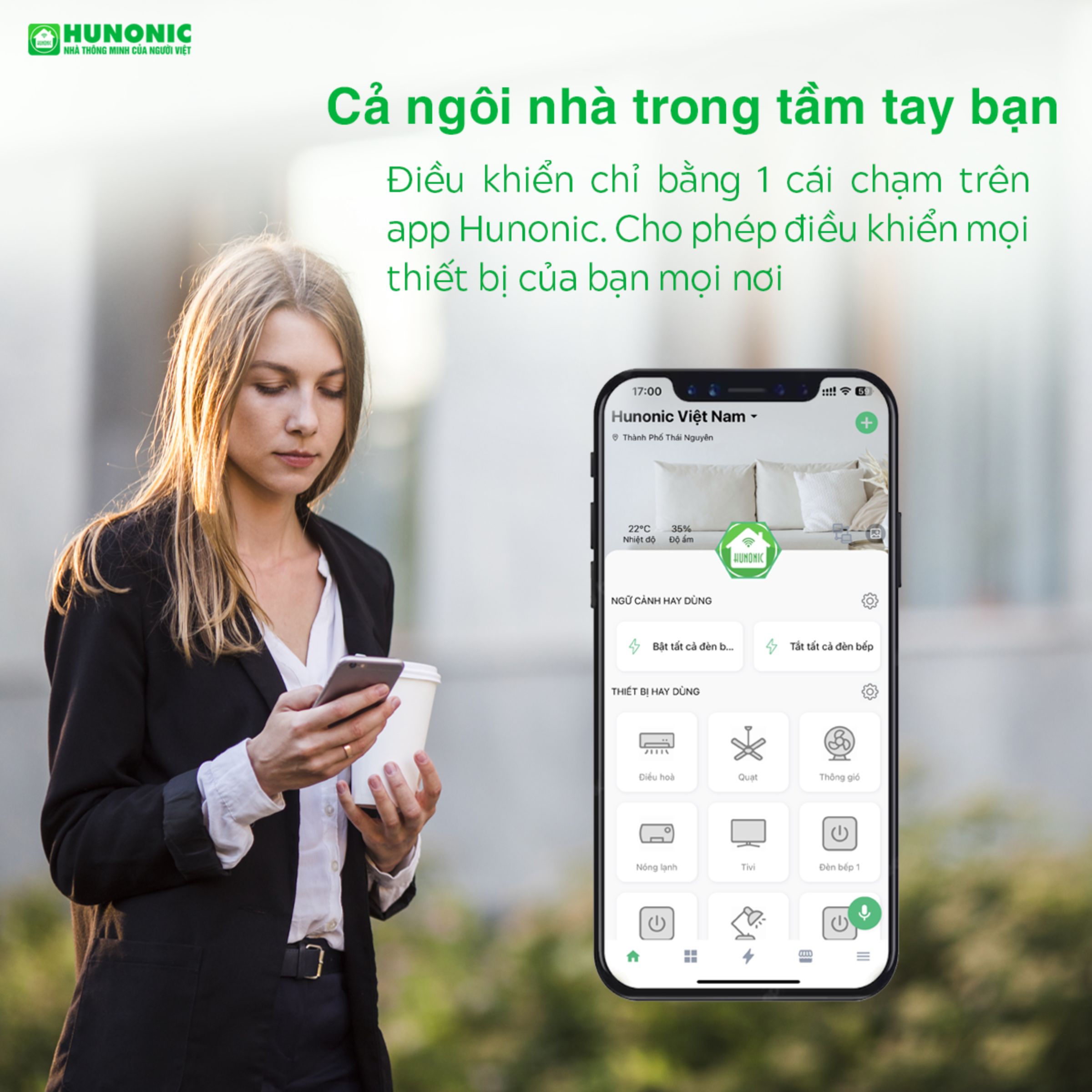 - Điều khiển từ xa – bật/tắt thiết bị qua smartphone, ứng dụng Hunonic Smart hoặc Tuya/Smart Life.
