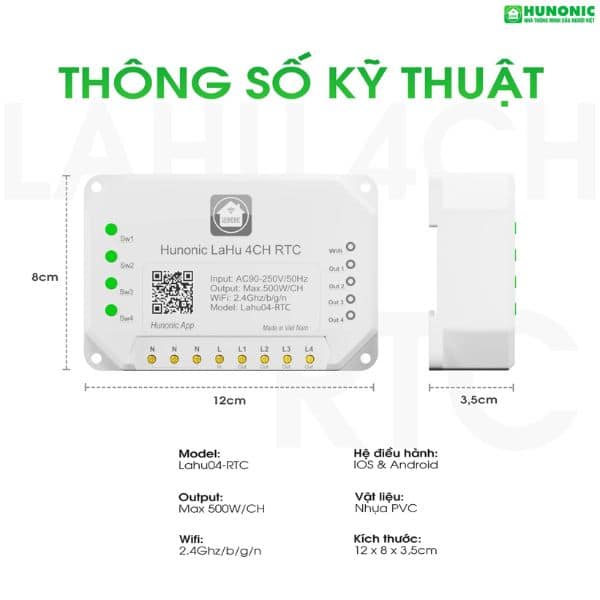 Hunonic là thương hiệu Việt Nam nổi tiếng với các thiết bị nhà thông minh, đặc biệt là công tắc thông minh cho máy bơm, nhà xưởng và hệ thống chiếu sáng. Lahu 04 RTC kết hợp tính năng hẹn giờ chính xác, kết nối Wifi + Bluetooth, an toàn và độ bền cao, đáp ứng nhu cầu thực tế tại Việt Nam. Đây là lựa chọn hoàn hảo cho những ai tìm kiếm một công tắc thông minh ổn định, bền bỉ và dễ sử dụng.
