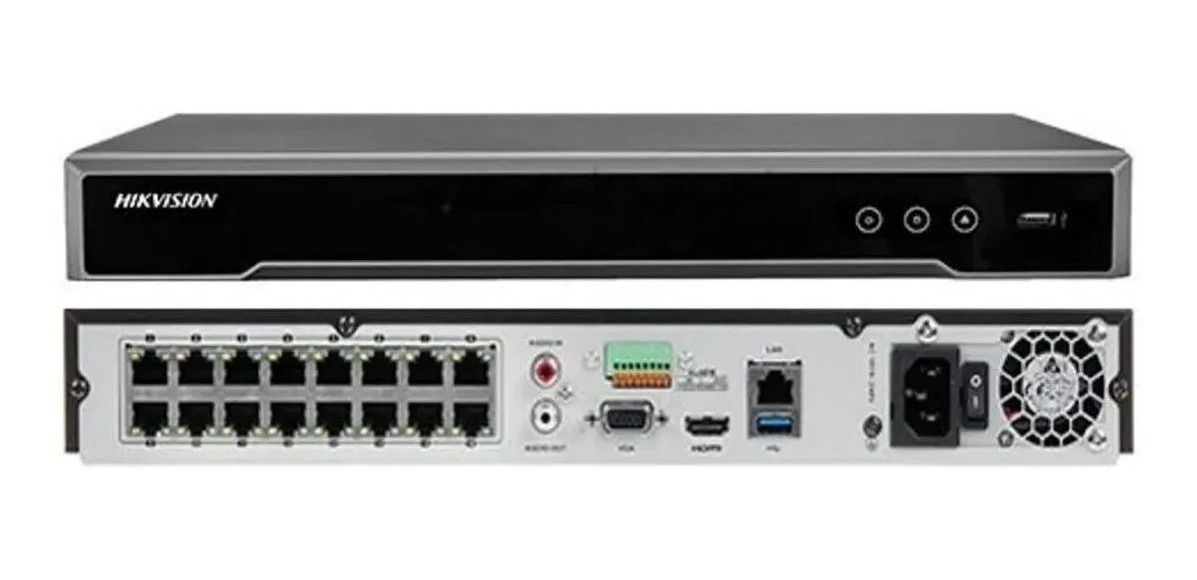 Đầu ghi chuyên nghiệp 16 kênh PoE. Hỗ trợ camera 8MP, xuất hình 4K qua HDMI. 2 khe HDD tổng 20TB. Xem từ xa qua Hik-Connect, phù hợp cửa hàng, văn phòng, nhà xưởng.