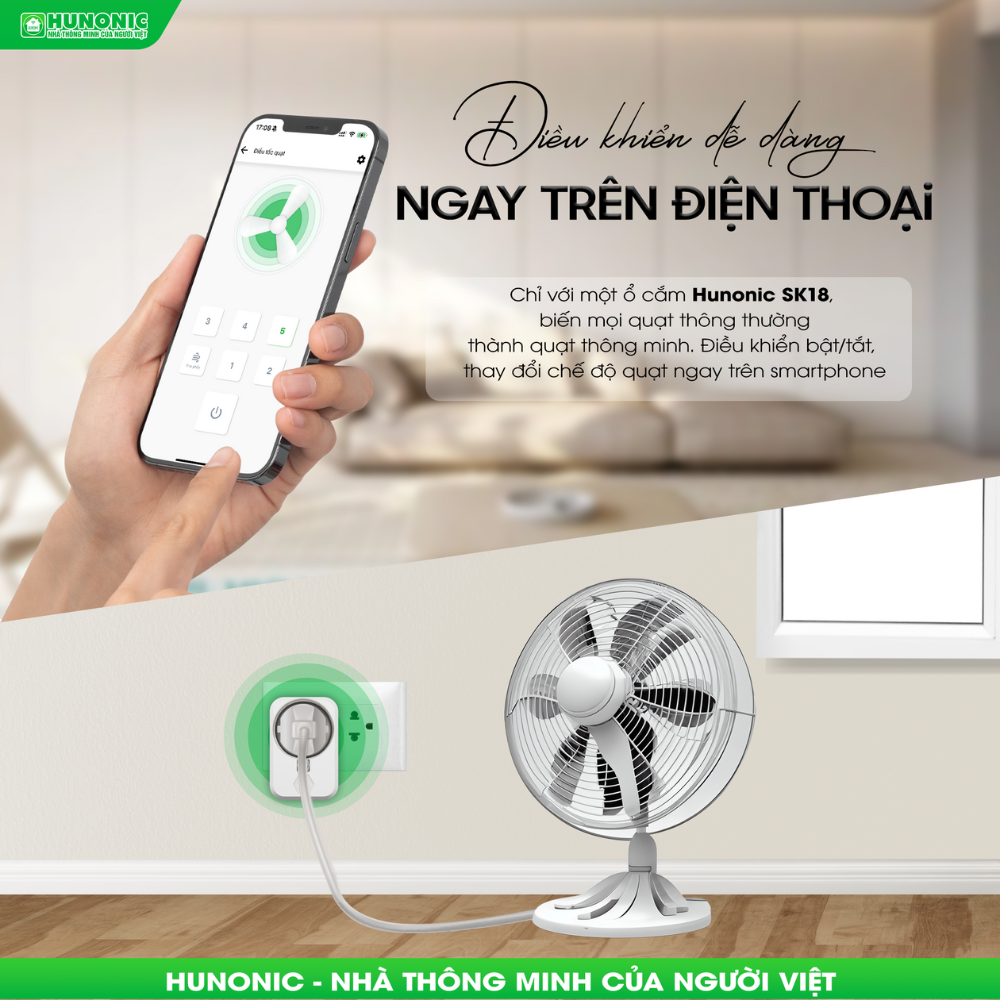 Ổ cắm quạt thông minh WiFi Hunonic SK18 – Biến quạt thường thành quạt thông minh trong 1 phút!