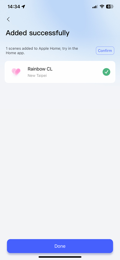 - Cảnh sẽ xuất hiện trong Home App, sẵn sàng cho việc sử dụng trong các tự động hóa.